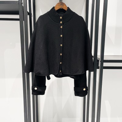 Early spring black semi-turtleneck loose cape type single breasted royal sister knit coat