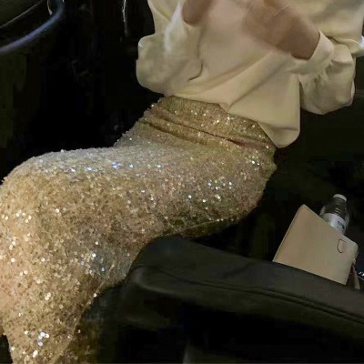 New Mingyuan Xiaoxiangfeng Sparkling Woolen Bun Hip Comb Versatile Long Half Skirt