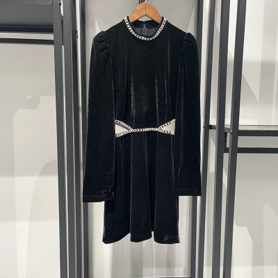 Early Spring Gorgeous Bead Collar Careful Machine Mesh Waist Velvet Black Dress Dress