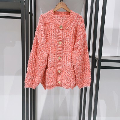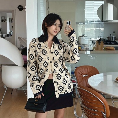 Autumn and winter handmade crochet lapel contrasting diamond grid knitted cardigan men's and women's outerwear