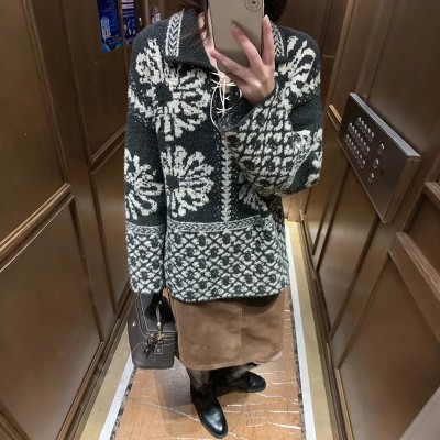 Retro Jacquard Sweater Loose Lazy Fel Island Strapped Collar Sweater